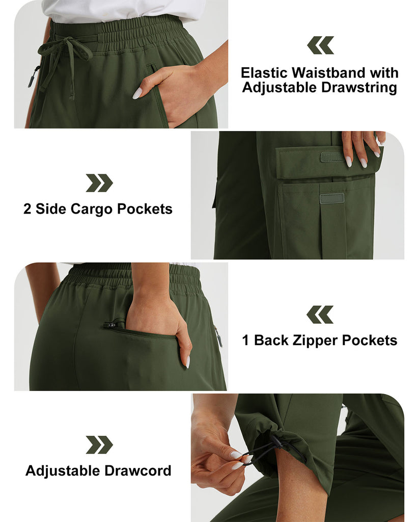Libin Women's Drawstring Multiple Pockets Casual Cargo Pants Tall-31''